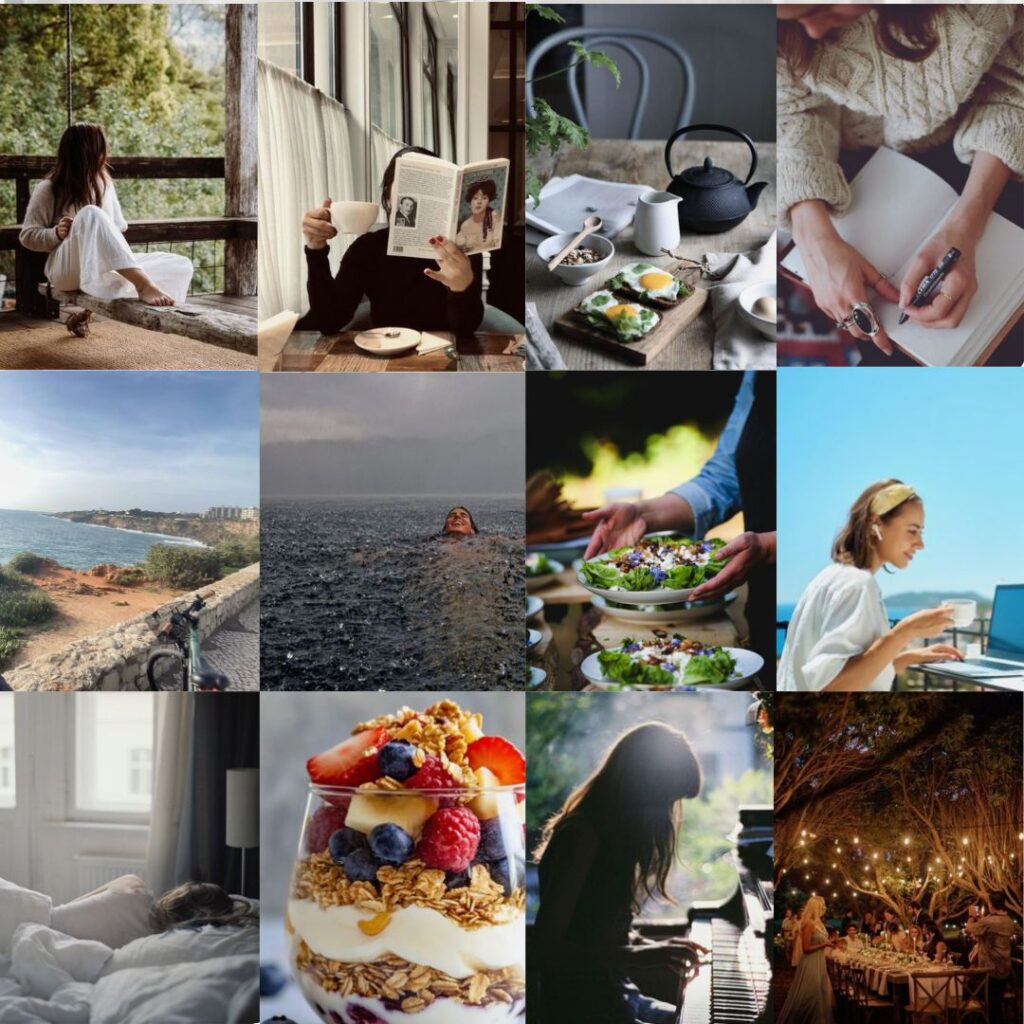 Tee kollaasista pystykuvaversio ja tallenna se kännykkääsi taustakuvaksi, jolloin näet visiosi monta kertaa päivässä. Mieti, miten saisit nykyiseen arkeesi rakennettua enemmän hetkiä, joissa kuvissa näkyvät asiat voisivat toteutua. Elämä ei koskaan ole täydelllistä, mutta ehkä osa asioista on kuitenkin jo nyt toteutettavissa ja voit kuvitella olevasi oman elämäsi käsikirjoituksessa etenemässä haluamaasi suuntaan. Itse tein privaatin instatilin, jonne pinnasin kuvakollaasini ja koetan nyt sitten arjestani napata kuvia silloin, kun olen tekemässä jotain sellaista, joka sopisi tämän kollaasini teemoihin.