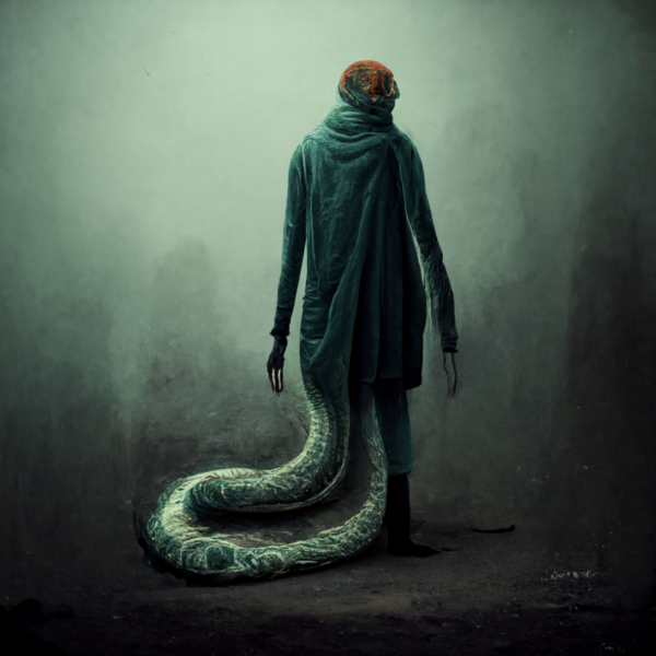 Palvelu tekee komentosi pohjalta neljä kuvaehdotusta, jonka jälkeen voit pyytää valitsemistasi kuvista joko parannellut tai tarkennetut versiot. Tässä ensimmäisen kierroksen kuvista paras lausekkeella “Person turns into character of a snake”